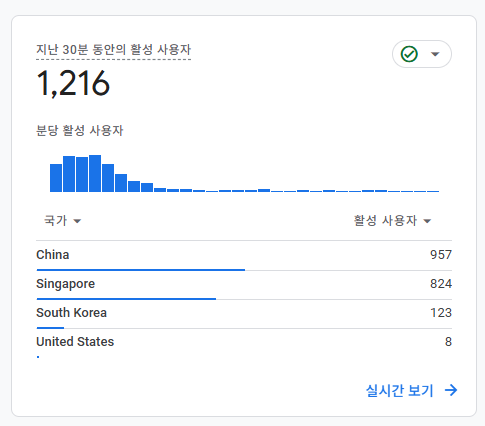 중국과 싱가폴에서 엄청난 트래픽이 몰려왔다.