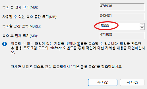 5000MB(5GB) 정도 축소해준다.