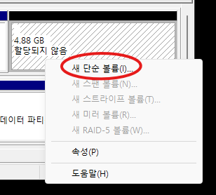 우클릭 이후 새 단순 볼륨
