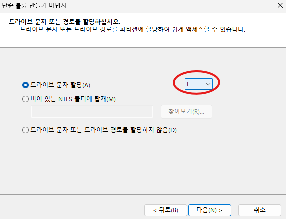 드라이브를 어떤 알파벳으로 할건지 지정하는 곳이다.
