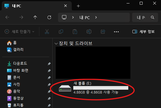 내 PC에 들어가면 새로운 드라이브가 생성되었다.