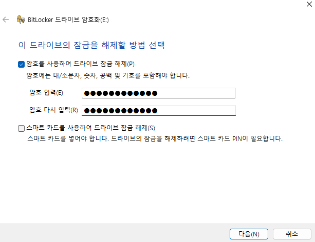 이제 이 드라이브는 암호를 입력해야 접근이 가능한 것.