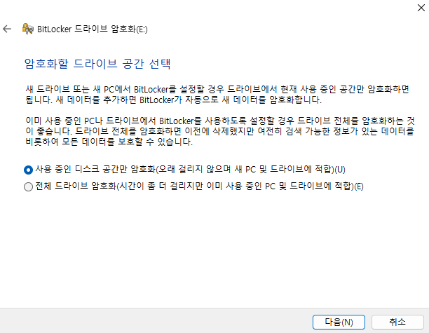 사용 중인 디스크 공간만 암호화