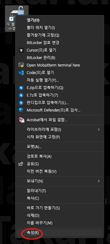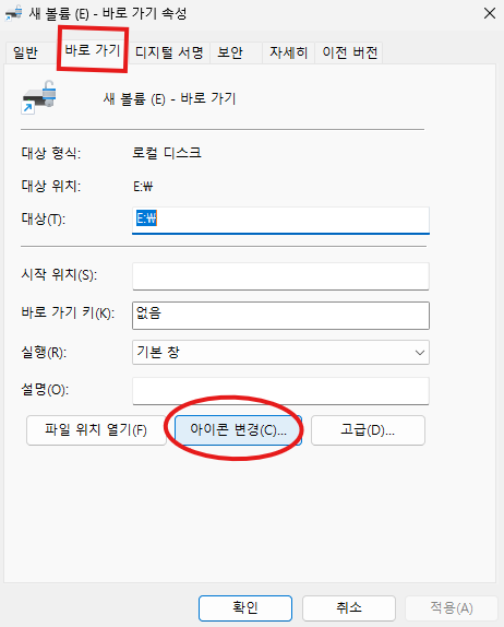 이 바로가기 아이콘에 우클릭 속성