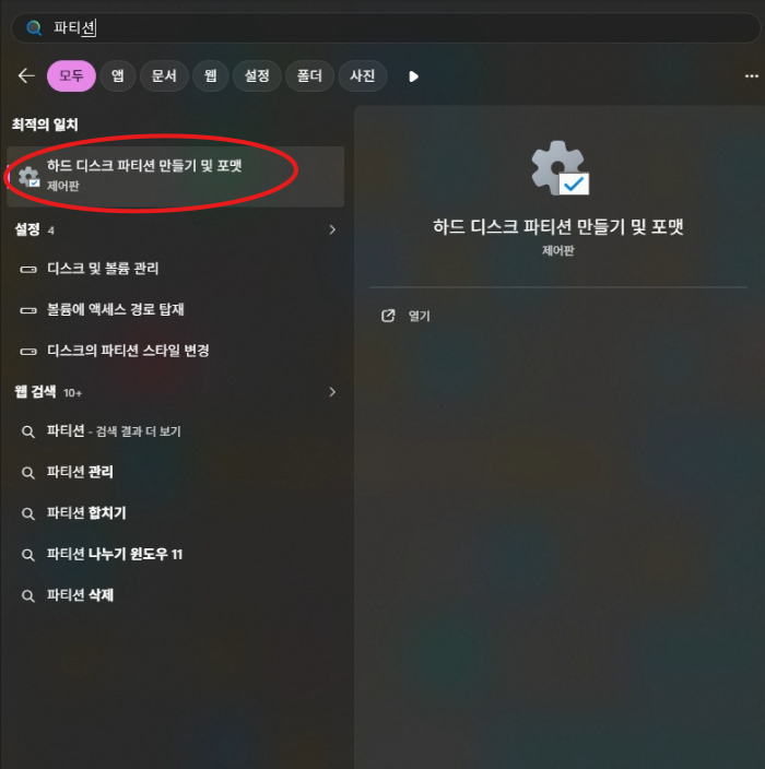 파티션 검색 후